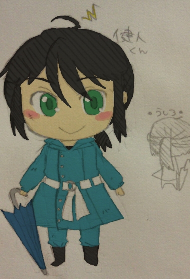 ◇にくのケータイを男の子にすると 名前は「健人(けんと)」。黒 の後ろ結び で、瞳は碧眼。身長は185cmくらいの我慢強い男の子です。◇